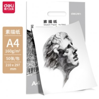 得力(deli)a4素描纸50张 160g绘画纸彩铅画 美术写生手绘临摹学生用初学者速写铅画纸 73942