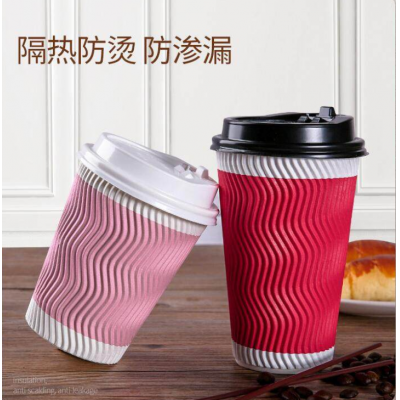 纸杯 一次性杯子 奶茶杯 瓦楞杯 带盖 红色