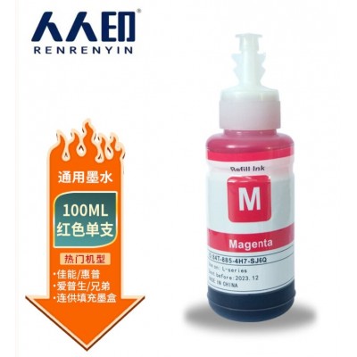 人人印 适用惠普 佳能 爱普生喷墨打印机 连供通用墨水100ML 红色