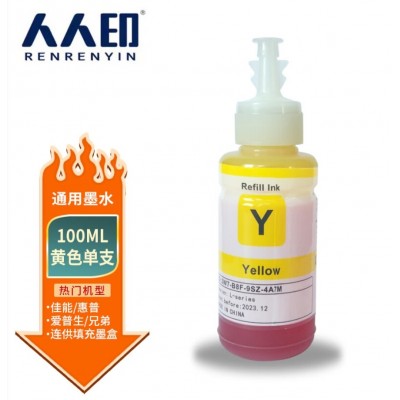 人人印 适用惠普 佳能 爱普生喷墨打印机 连供通用墨水100ML 黄色