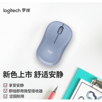 罗技(Logitech)M221 轻音鼠标 无线鼠标 办公鼠标 对称鼠标 带无线微型接收器 雾霭蓝