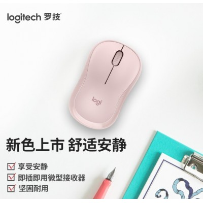 罗技(Logitech)M221 轻音鼠标 无线鼠标 办公鼠标 对称鼠标 带无线微型接收器 茱萸粉