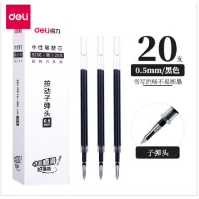 得力(deli) 按动中性笔签字笔水笔黑色碳素笔办公用品 0.5mm 笔芯黑色1盒 S206