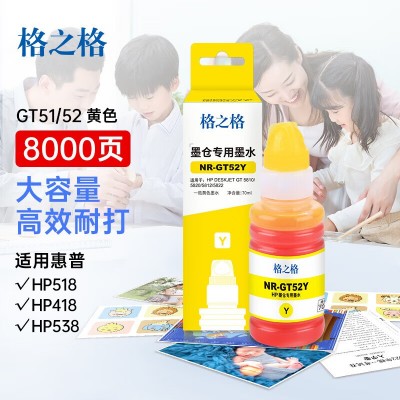 首页 > 办公用品 > 墨水 > 格之格适用惠普GT418 5810 5820 GT310 319 410打印机GT52黄色墨水