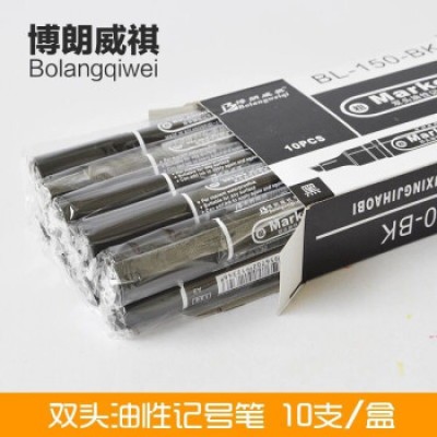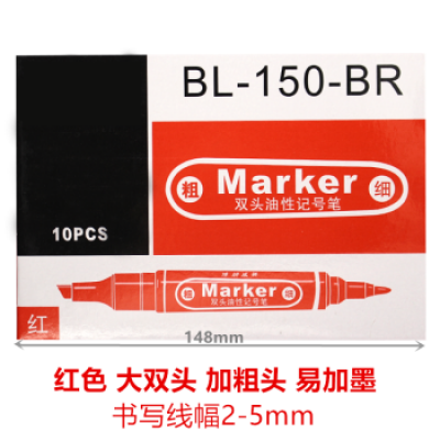 博朗威祺 易加墨记号笔 油性 大双头 斜头广告笔POP用笔 大头 箱头粗笔头 150【粗笔头】红色 10支/盒 博朗威祺150油性双头粗笔画记号笔