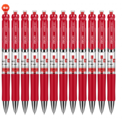 得力(deli)按动中性笔签字笔 0.5mm子弹头经典办公按动笔按压水笔 红笔 12支/盒【S01 红色 12支】