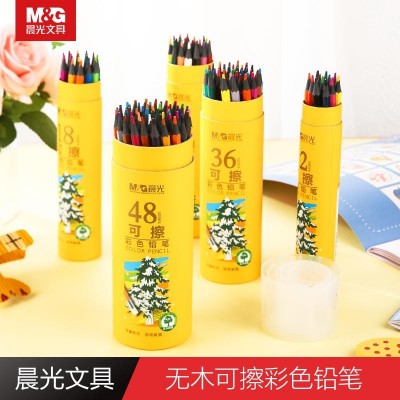 晨光48色彩色铅笔可擦彩铅开学礼物学生美术绘画填色六角杆黄筒装可擦彩铅
