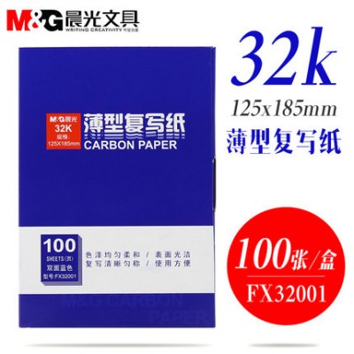 晨光 32K蓝复写纸APYVC608 100页盒装蓝色复写纸 32100 SKU:TP0016015