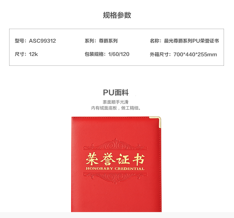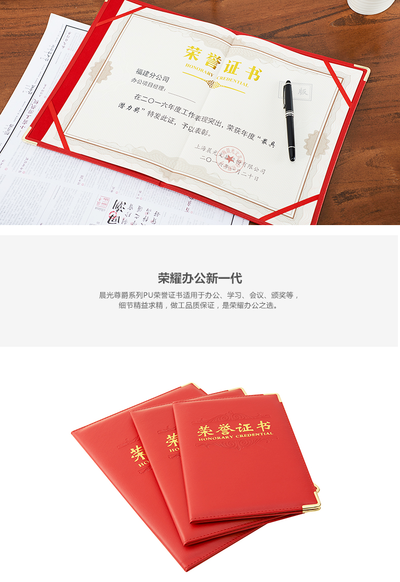 首页 > 办公用品 > 文具 > 晨光ASC99312 尊爵PU荣誉证书12K