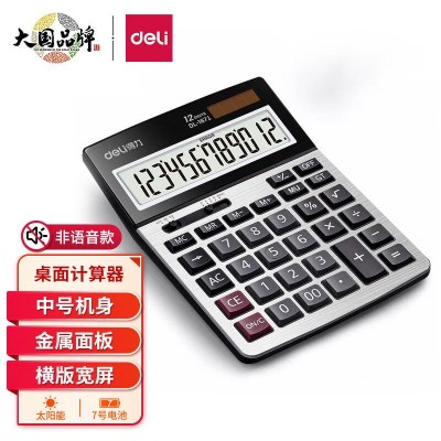 得力(deli)双电源商务办公桌面计算器 12位大屏塑胶按键桌面计算机位数功能款-大号