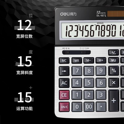 首页 > 办公设备 > 计算器 > 得力(deli)双电源商务办公桌面计算器 12位大屏塑胶按键桌面计算机位数功能款-大号