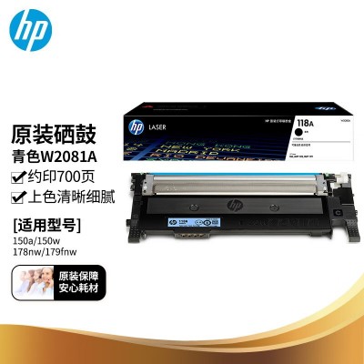 惠普(HP)W2081A原装青色硒鼓118A(适用150a/150w/178nw/179fnw打印机)印量700页