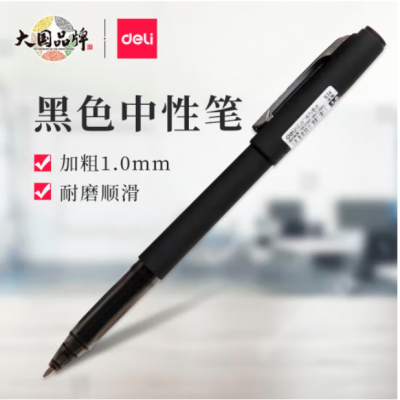 得力S34中性笔1.0mm加粗水笔签字笔 黑色12支/盒单支价格