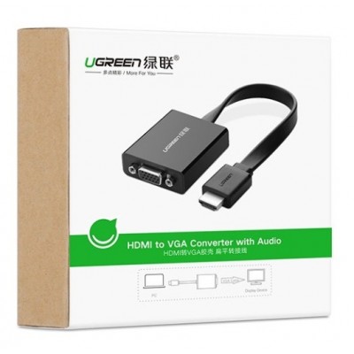 绿联(UGREEN) HDMI转VGA线转换器带音频口 高清视频转接头线适配器 笔记本电脑盒子连接电视投影仪显示器线 黑色+带供电接口