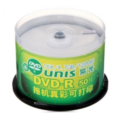 紫光(UNIS)DVD-R空白光盘/可打印刻录盘 16速4.7GB 拖机真彩可打印系列 桶装50片