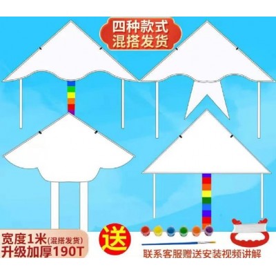巨联2507手工风筝儿童空白风筝涂鸦手绘画风筝 教学diy白色风筝自制材料包(包含1米风筝/ 6色颜料/1只笔/50米线板)
