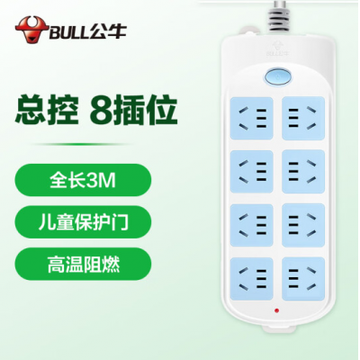 公牛(BULL)GN-604 3M接线板 8位总控全长3米