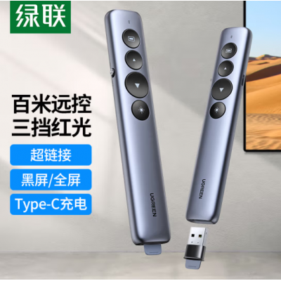 绿联15153 翻页笔 激光笔可充电 PPT投影笔教师教鞭电子演讲笔 多媒体幻灯片无线演示课件笔