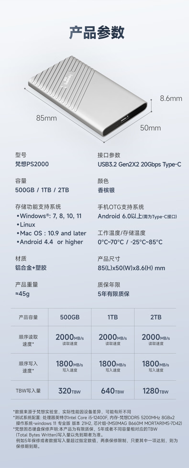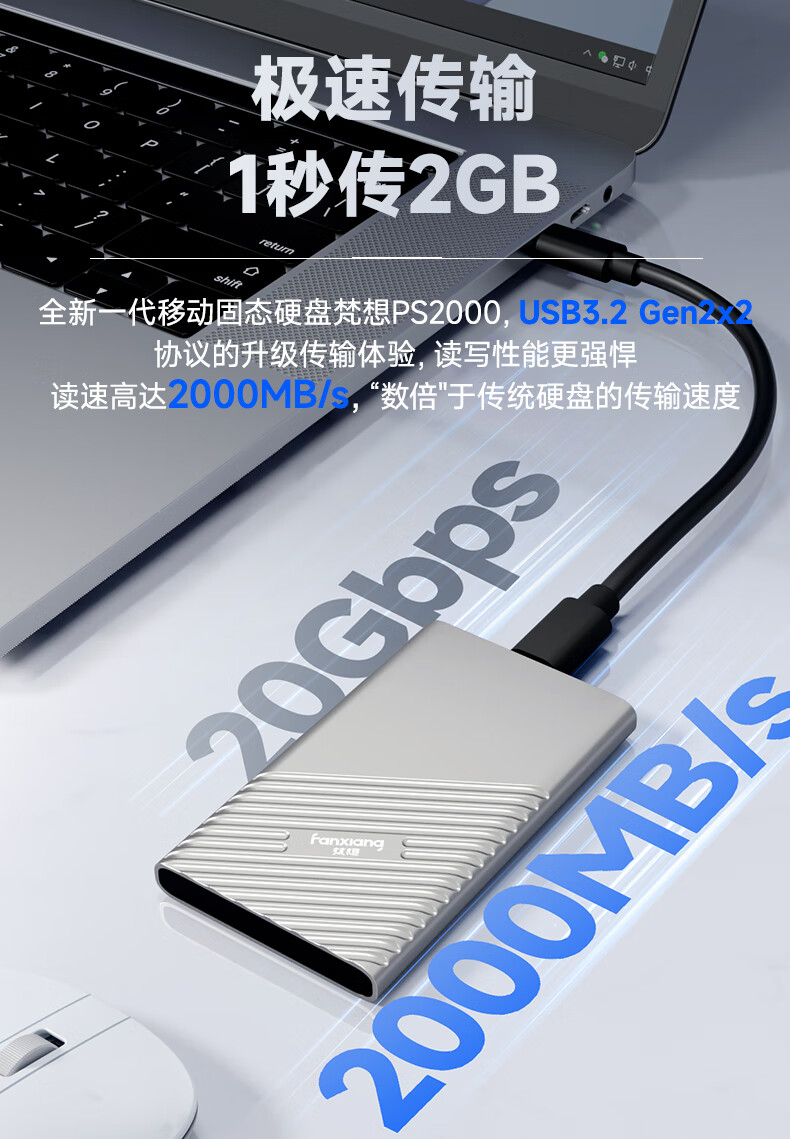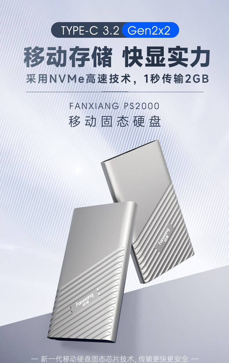 梵想(FANXIANG)1TB 移动固态硬盘(PSSD)Type-c固态硬盘USB3.2Gen2高速传输 PS2000 读速高达2000MB/s